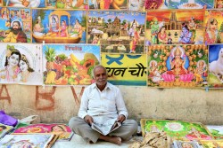 A poster seller on the street. Photo by Christopher Pinney.