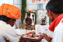 Residents of Bhatisuda, M.P. performing worship. Photo by Christopher Pinney.